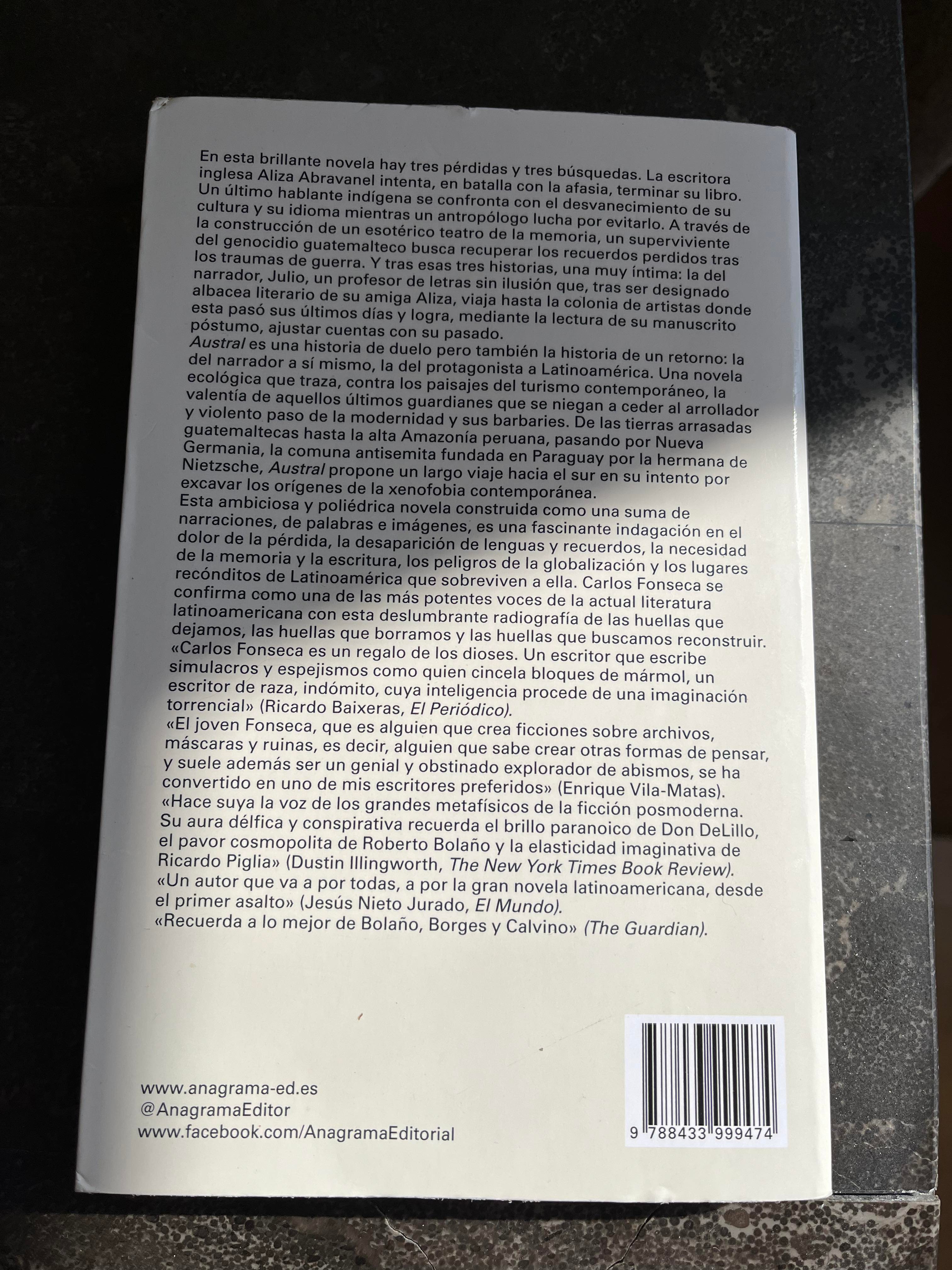 Carlos Fonseca. Austral. Barcelona: Anagrama, 2022. 234 páginas