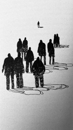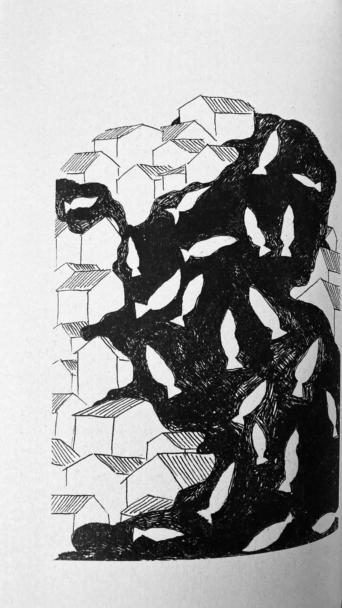 Es como un aforismo, o como uno de esos dibujos de Rocío Katz que acompañan al relato. Tiene su propia lógica, funciona de una vez, en una especie de todo o nada. El relámpago del sentido-sin sentido que precede a la tormenta.