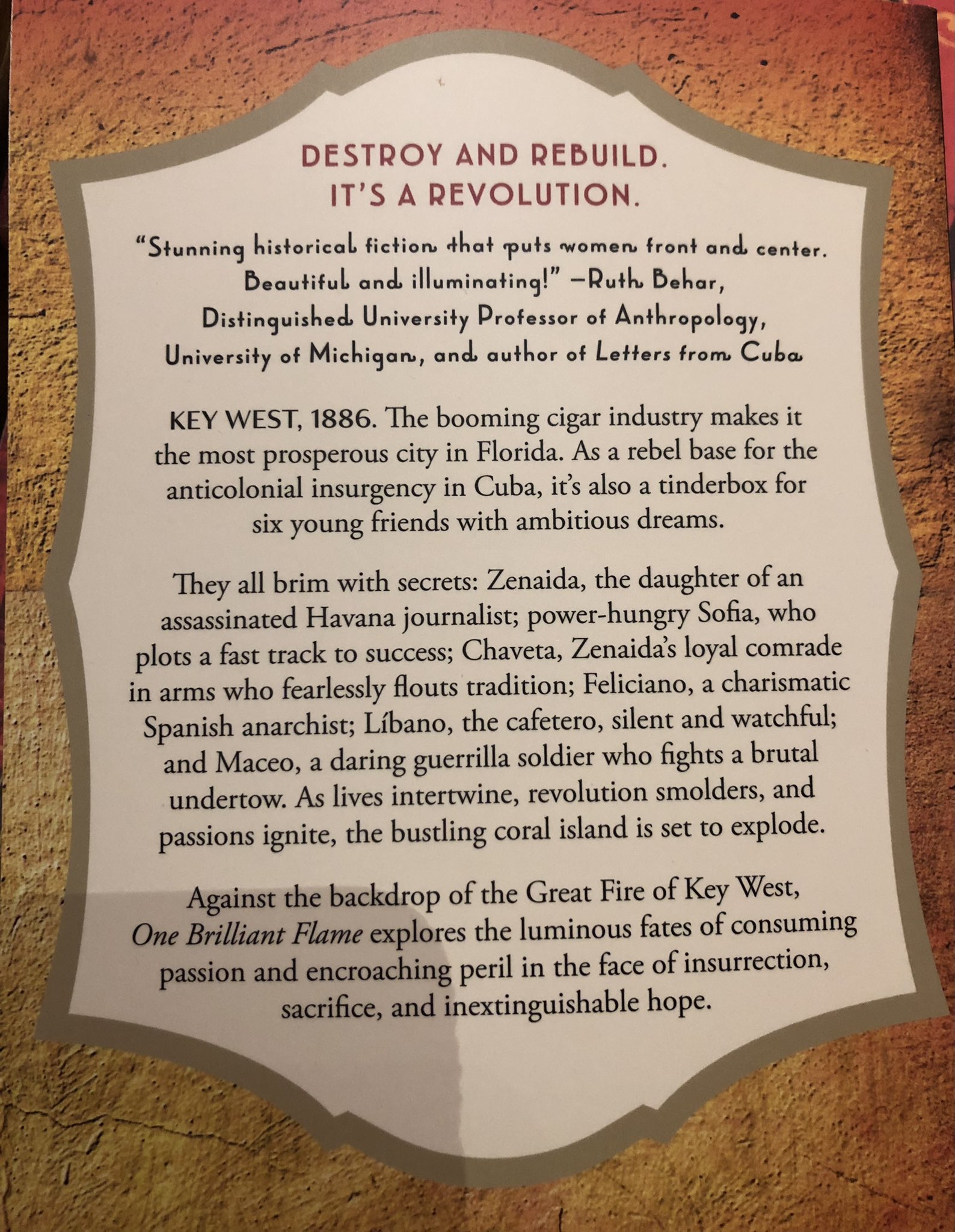 Months ago, we finished writing a manuscript of a long experimental novel that took us 7 years to finish, and so we craved the opposite of experimentation: structure that plays by the rules of its craft, the pleasure of well-written fiction. And that is how we found ourselves reading One Brilliant Flame, by Joy Castro, a writer we have read before, particularly her two noir novels set in post-Katrina New Orleans, and her beautiful autobiographical book of essays, Island of Bones. Like her two New Orleans-based novels, this one is a sort of historical thriller, carefully researched, with a crime at the center and a historical catastrophe haunting the plot. In just the first chapters, we readers enter the meticulously researched and historically accurate world of Key West in 1886. The crime? A fire in cigar factory. The characters? Mostly Cuban from various social classes and races. The historical context? The Cuban wars for Independence and anti-slavery movement (the Ten Year War (1868-1878), the Little War (1878-1880) and right before the set up for the War of Independence (1895-1898) that ends with the US Invasion of Cuba, Puerto Rico and the Phillipines), the political life of tobacco workers in the US, the last days of the Spanish Empire and the rise of the American one. In just a couple of days, we finished reading the entire novel and enjoyed every bit of it. We learned so much, both about craft and about this fascinating historical moment in Key West, where revolutionary ideologies clash left and right: anarchism, communism, capitalism, free love, early feminism, abolitionist and independentist movements, maroonage, masonry, syndicalism, santería. This is a context that particularly fascinates us as students of Latin American anarchism and of the historical phenomenon of the loud readers (lectors) in tobacco factories across the Caribbean and the east coast of the US. One of the great accomplishments of this novel is precisely to reimagine the social world made possible through this fascinating practice of loud readings. Lectors or loudreaders, as the historian Aracely Tinajero teaches us[1], became an alternative proletarian